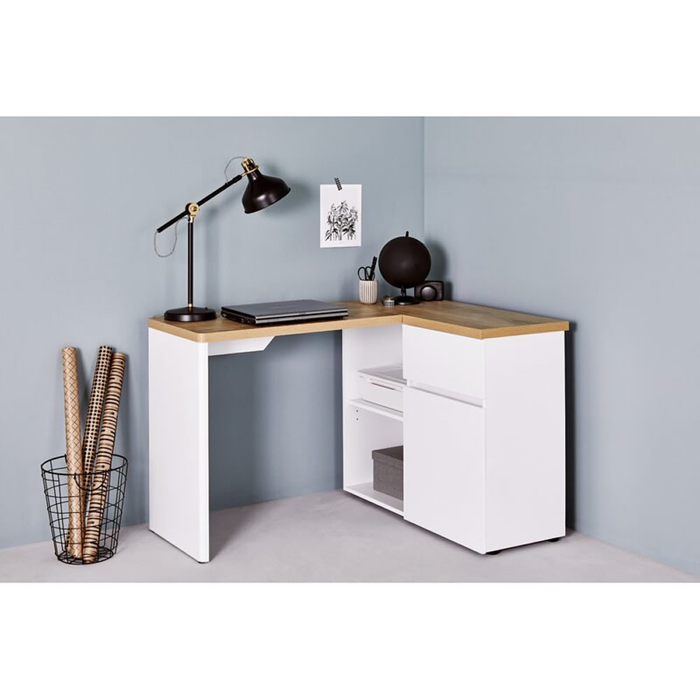 Der Eckschreibtisch Cuuba Libre 125 E von Jahnke bietet diverse Möglichkeiten um eine angenehme Arbeitsathmosphäre zu bieten. Der Schreibtisch bietet eine Auswahl an Ablage- und Schubfächern welche für Drucker, Ordner und Dokumente wie geschaffen sind und leichten Zugriff auf die Utensilien ermöglichen. Die Tischplatte ist auch für grössere Projekte geeignet und weist ein hohes Maß an Belastbarkeit auf. Der Tisch ist für eine optimale Positionierung beidseitig montierbar.
