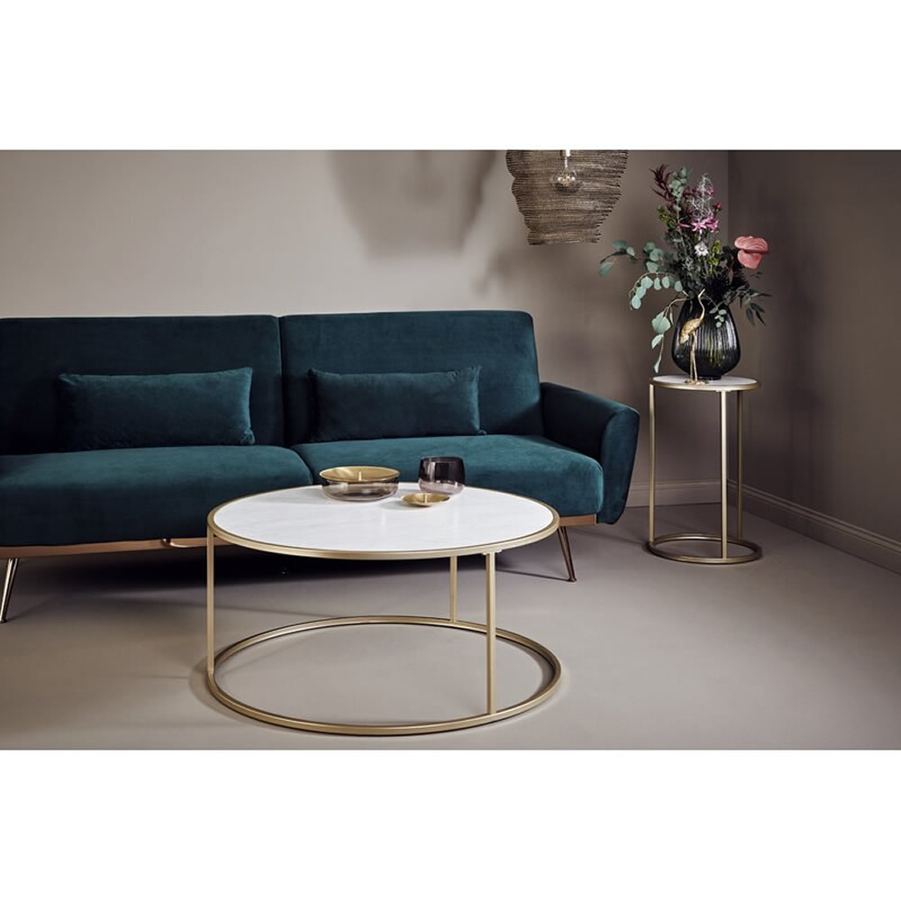 Der Jahnke Sol Coffee in Gold ist ein hervorragender Couchtisch zur Ergänzung zu Ihrer heimischen Couch. Er bietet eine große Ablagefläche und ein unverwechselbares Design bestehend aus hochwertigem Metall in Goldoptik und Holz.