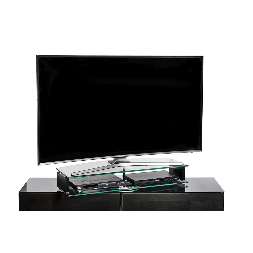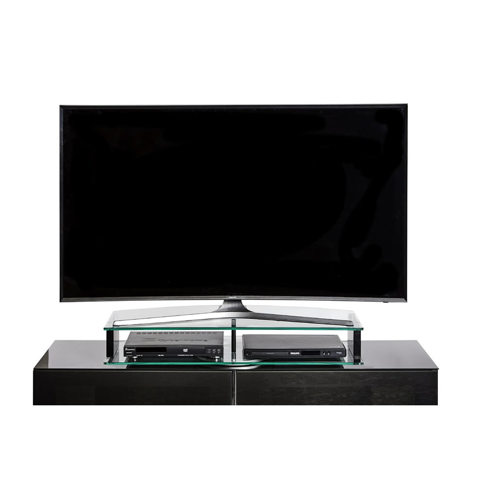 Der TV Aufsatz Z DA 90 von Jahnke tut was man von ihm erwartet. Mit einer edlen Drehvorichtung und zwei Ebenen aus Glas ist er design- und funktionstechnisch voll ausgerüstet.