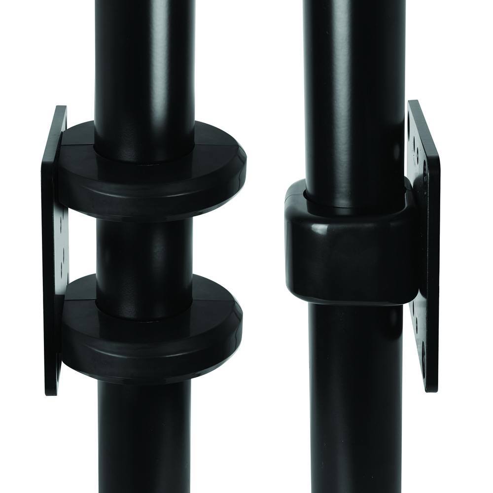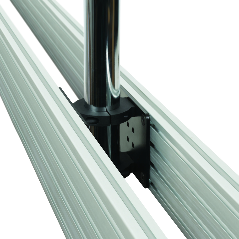 Mit der BT8390-CFK-Halterung können horizontale BT8390-Montageschienen an B-Tech-Zubehörmanschetten angebracht werden, die in einer Vielzahl von Konfigurationen für die Mastmontage verwendet werden können, z. B. an der Decke montierte Menükarten und Videowände. Die 5 mm dicke Stahlplatte ist für schwere Lasten geeignet und kann an jedem B-Tech-Zubehörhalsband montiert werden, um einseitig oder hintereinander installiert zu werden (zusätzliches BT8390-CFK erforderlich).